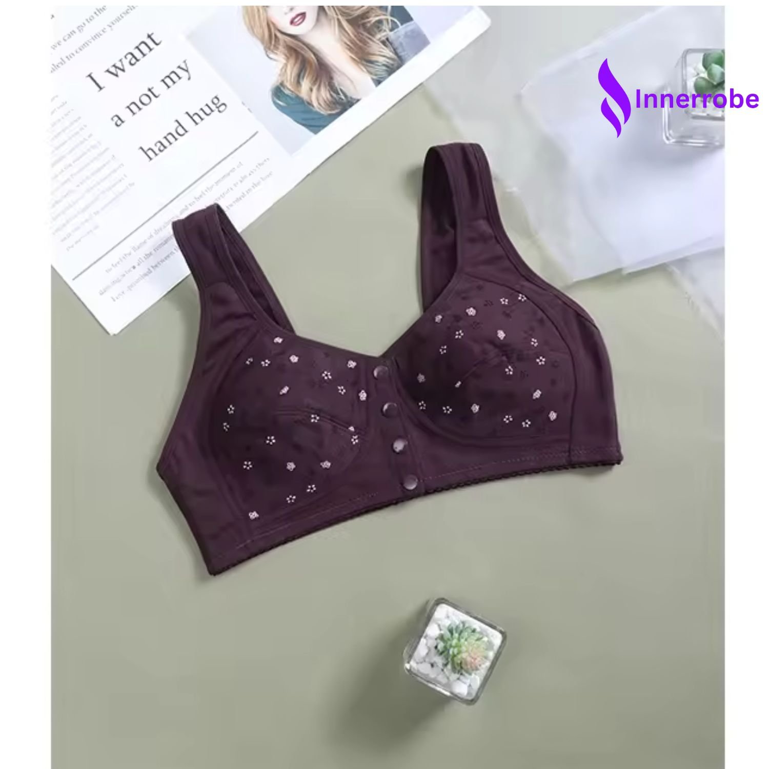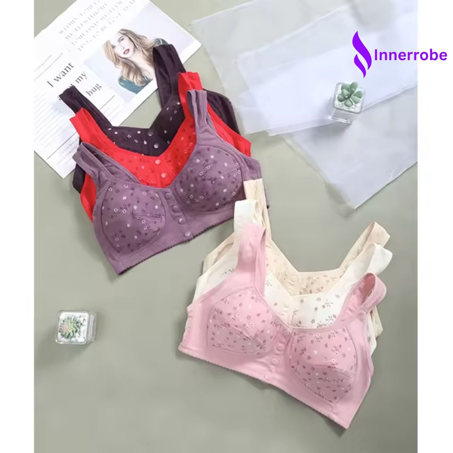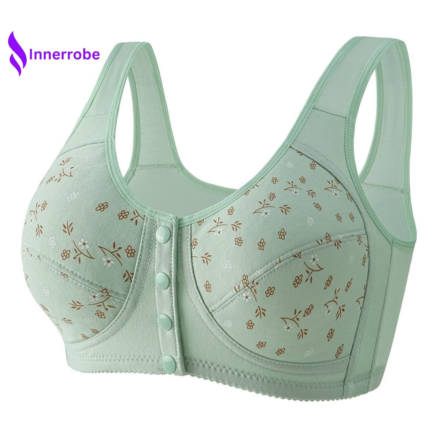 Introducing the InnerRobe Cotton Front Button Bra — specially designed for middle-aged and elderly women who value comfort, support, and ease of use.